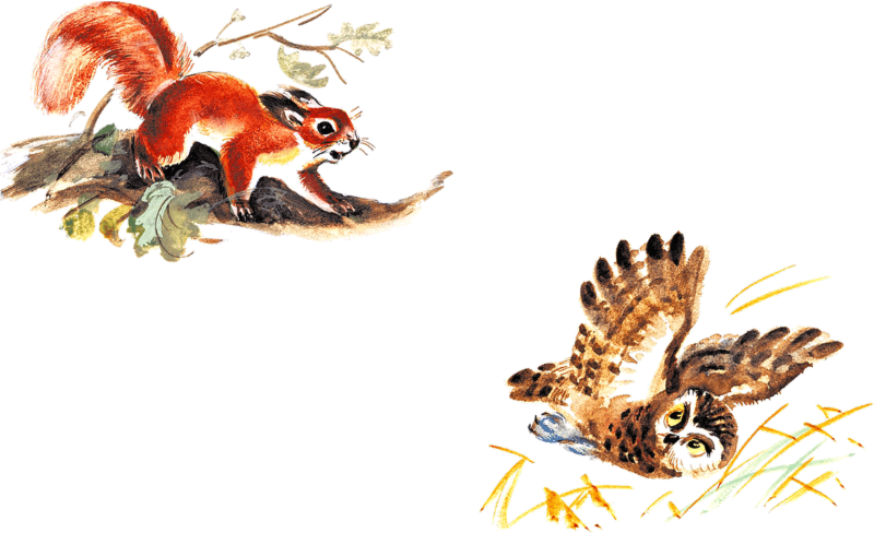 – Жил Дятел пёстрый – нос вострый, жил Скворец – первый в роще певец, жил Сыч – попадёшь ему в когти – не хнычь, теперь я живу – Белка – по веткам скакалка, по дуплам сиделка. А ты кто?