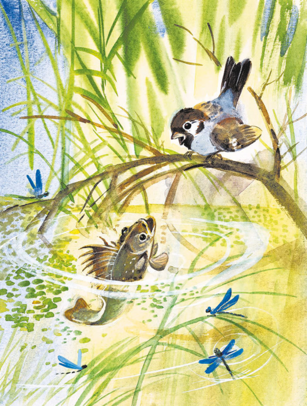 Задремал – и видит во сне, будто он не на дереве, не на земле спит, а в воздухе. Кунице с дерева его не достать и Лисице с земли не достать: вот только ноги под себя поджать – ей и не допрыгнуть.