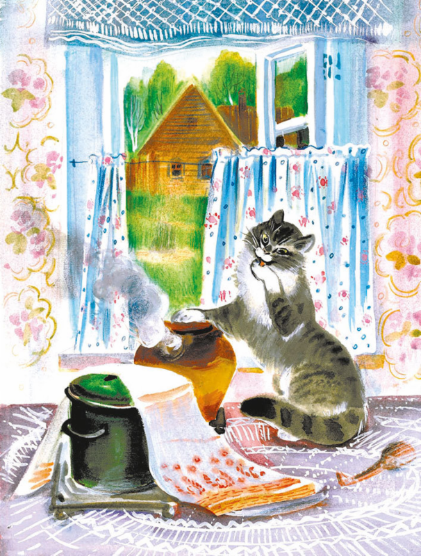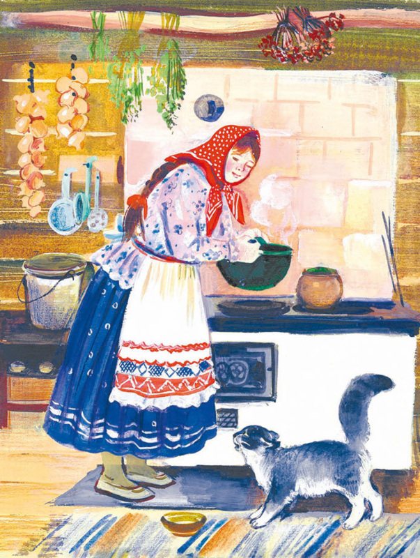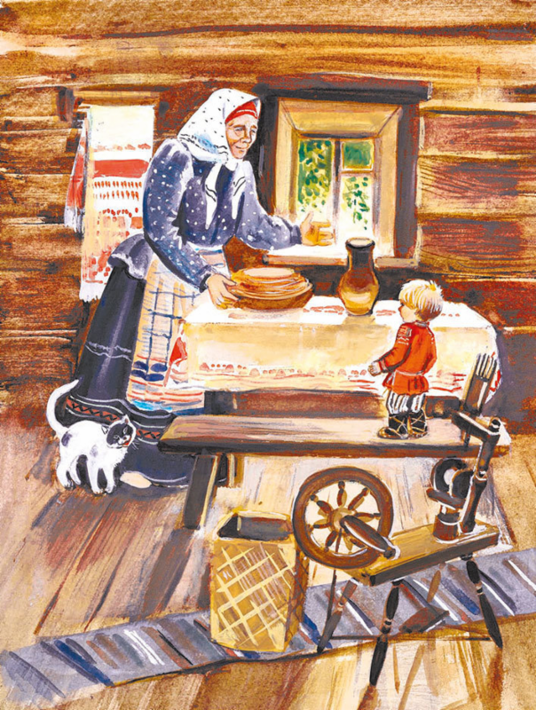 Жил старик со старухою. У них не было детей. Старик поехал в поле пахать, а старуха осталась дома блины печь. Старуха напекла блинов и говорит: