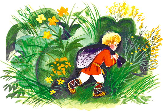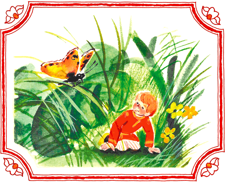 Старик услыхал с поля, кто-то его зовёт, пошёл к сыну навстречу, пересадил его через кочку и говорит: