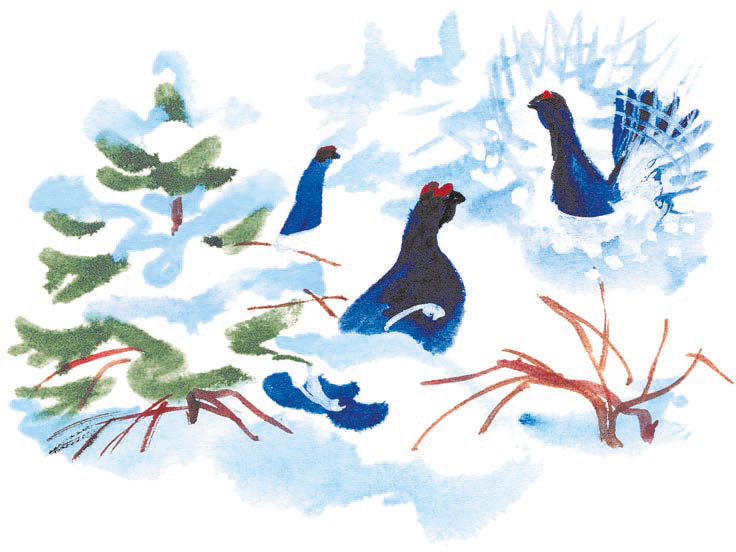 С тех пор все тетерева зимой в снегу спят: тепло им там и уютно и от злых глаз безопасно.