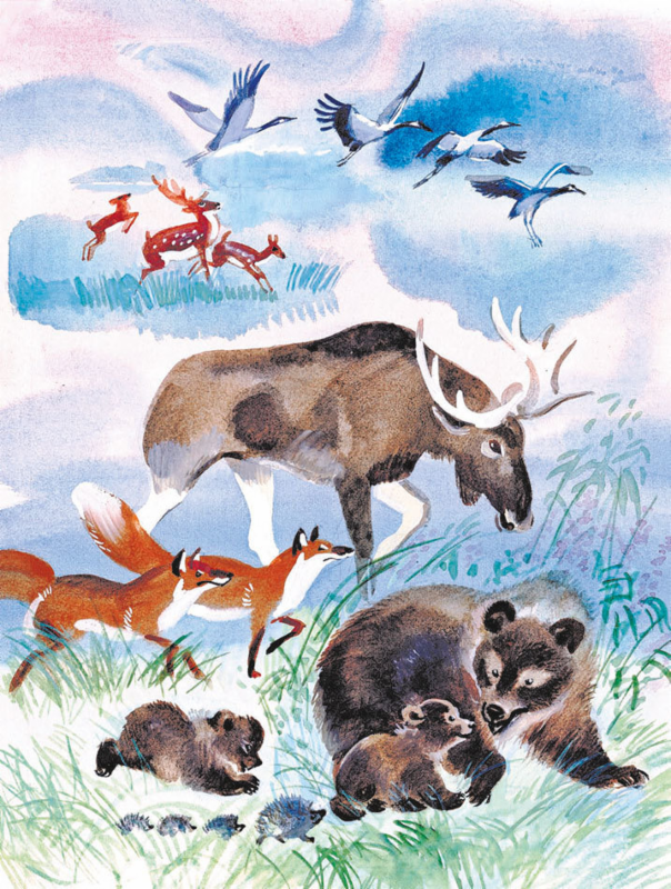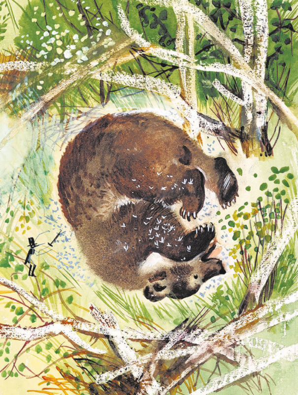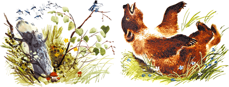 У Лисицы и Куницы от страха душа в пятки. Кинулись в разные стороны: Куница – на дерево, Лисица – в кусты.