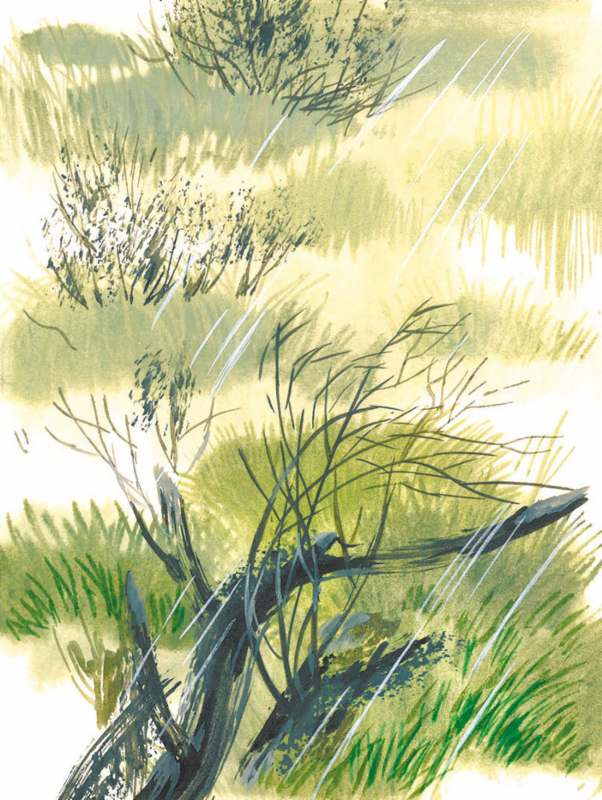 Вот Куница первая прискакала да все деревья оглядела, все ветки облазала, – нет Терентия!