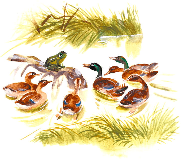 – Какая ты глупая, уточка… Вылезай на лёд! А впрочем, до свиданья! Я тороплюсь по своим делам…