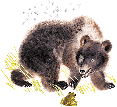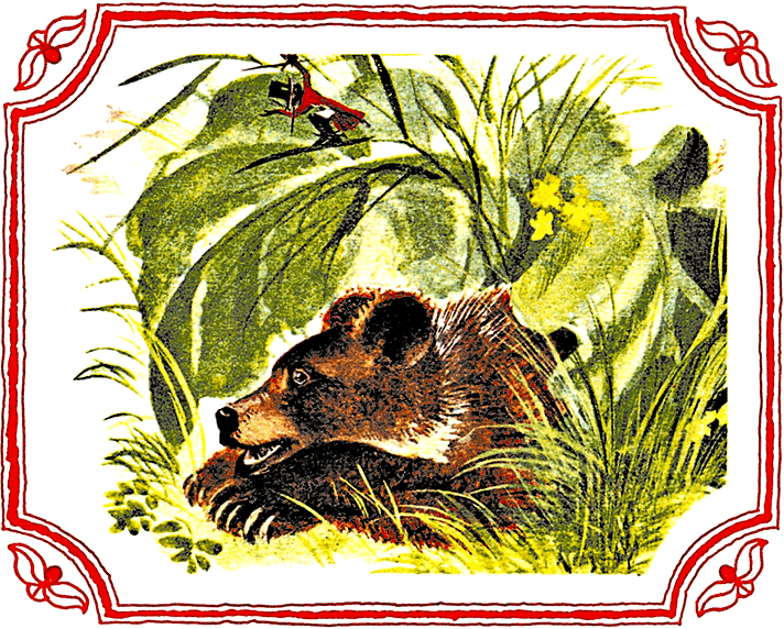 А медведи пришли домой голодные и захотели обедать. Большой медведь взял свою чашку, взглянул и заревел страшным голосом: