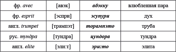 Если торговля с Голландией шла через «окно», то американцы, появившись у берегов Японии в XIX в., вышибли дверь. Период изоляции закончился, и воцарившийся в 1868 г. император Мэйдзи поступил со страной, как Петр I с Россией, — в краткие сроки модернизировал ее по западным образцам. Заимствованные слова хлынули потоком, а главными их источниками теперь стали английский, немецкий и французский языки. Английские заимствования преобладали в технике (например, эндзин 'мотор' от engine), немецкие — в медицине (например, представленное в задаче слово цубэрукурин 'туберкулин'), французские и итальянские — в искусстве (например, аториэ 'студия художника' от французского atelier и опэра 'опера' от итальянского opera). Попало в японский и несколько слов из русского языка, в частности катю:ся 'ободок для волос', получивший название в честь Катюши, героини романа Л. Н. Толстого «Воскресение», и представленная в задаче икура 'красная икра'; черная икра называется кябиа от французского caviar.