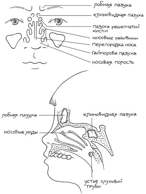 Итак, мы уже знакомы с тем, как нос устроен, и с тем, как он работает. Становится понятным, что, коль скоро нос столь тесно контактирует с полостью уха, с околоносовыми пазухами, с носоглоткой и т. д. – так не получится говорить о носе и не упоминать эпизодически о других органах, которые и анатомически, и физиологически с носом очень тесно связаны.