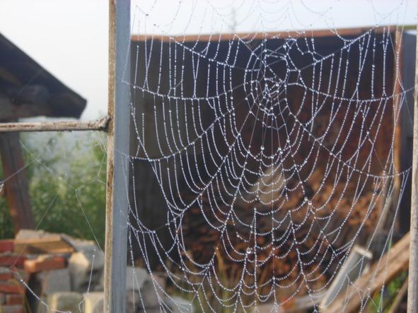 Этот снимок с капельками утренней росы, нанизанных на ниточки паутины, разместил у себя на рабочем столе компьютера. И получилось так: писал этот текст к снимку, а буквы попадали, словно в паутину — ощущение и зрелище получилось необычным.
