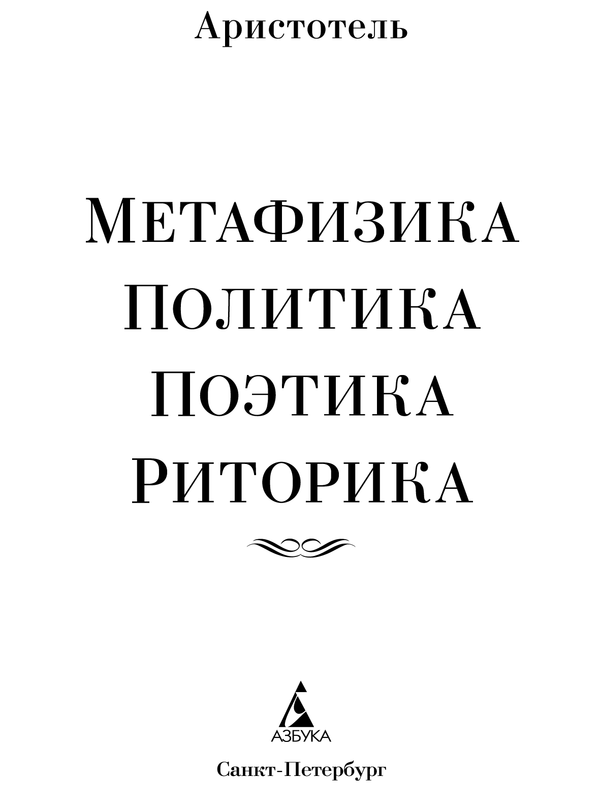 Метафизика ; Политика ; Поэтика ; Риторика : трактаты / Аристотель ; пер. с др.-греч. В. Аппельрота, С. Жебелёва, А. Кубицкого, Н. Платоновой. — СПб. : Азбука, Азбука-Аттикус, 2023. — 704 с. — (Non-Fiction. Большие книги).