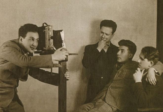 Участники ТРАМа электриков: композитор Василий Дехтерёв, актеры Александр Шорин, Исай Кузнецов, Анатолий Чеботарёв, Залман Храпинович (Зиновий Гердт) и другие. Середина 1930-х. Архив Исая Кузнецова