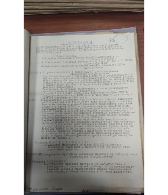 Я решила проверить наличие документов в других фондах этого архива, так как не смогла справиться с разочарованием от уничтожения сведений и запросила Протоколы партийных собраний парт. организации Гаринского РО НКВД, ведь если было личное дело и Александр Иванович Векшин был в Коммунистической партии, значит должны остаться какие-то следы его деятельности.