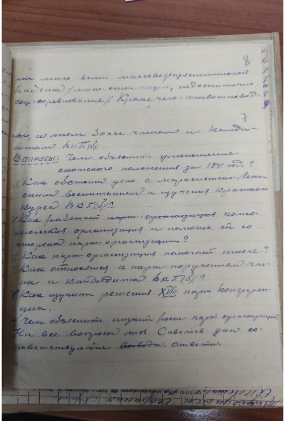 — Как обстоит дело с Марксистско-ленинским воспитанием и изучения краткого курса ВКП (Б)?