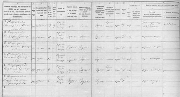 Когда Векшиной (Нефедковой до брака) Александре Григорьевне (матери первого мужа моей бабушки, т.е. свекрови) было 3 года (1895 год на момент Переписи), мать её Нефедкова Матрона Николаева (Николаевна) в 34 года (рожденная 1861 году) являлась вдовой, государственной крестьянкой (на момент переписи временно отсутствовала). Главным средством к существованию для неё и ее 5 детей явилось земледелие.