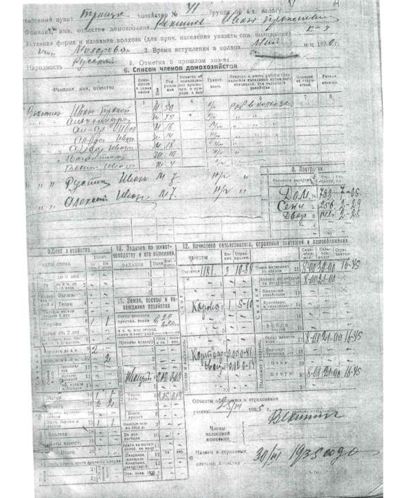 Как следует из Похозяйственной книги с. Н-Троицкое Гаринского района за 1935 год Векшин Иван Прокопьевич (отец первого мужа моей бабушки) вступил в колхоз им. Молотова в мае 1930 года.