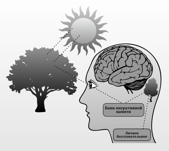 Первый уровень — личное хранилище. Оно, соответственно, также состоит из двух подуровней. Это оперативная память и личное бессознательное (часть из которого слабо доступна по различным психологическим причинам).