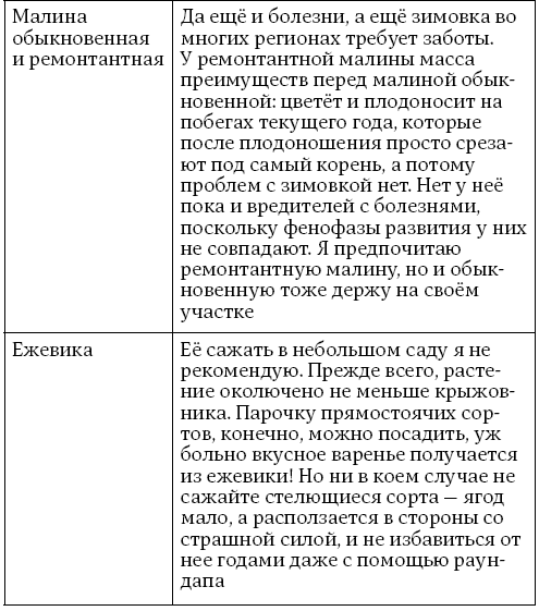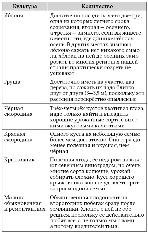 Приблизительное количество плодово-ягодных деревьев и кустарников, которые можно посадить в саду на семью из четырёх человек, приведено в таблице 3.