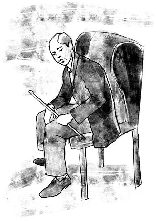 Я спросил его, что ему нужно, и получил в ответ, что он желал бы рому. Но когда я собирался уже выйти из комнаты, чтобы принести ром, он сел за стол и сделал мне знак подойти к нему ближе. Я остановился, держа в руке салфетку.