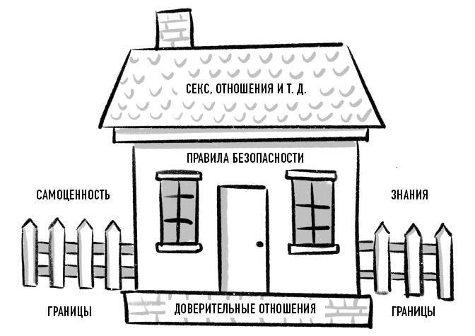 В моей книге к теме полового воспитания я хочу подойти основательно. Для наглядности приведу такую картинку. Дом – это символ качественных отношений вашего ребенка с самим собой, партнером и миром.