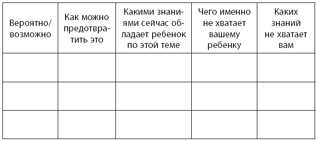 Заполните таблицу своими страхами за жизнь и здоровье ребенка.