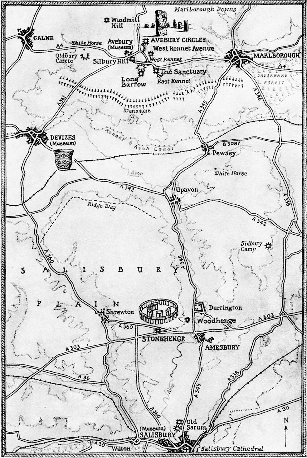 Карта графства Солсбери, где расположен Стоунхендж