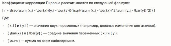 Коэффициент Пирсона широко используется в трейдинге для анализа корреляций между активами. Вот несколько примеров применения: