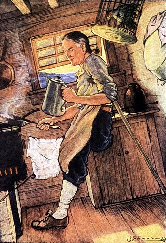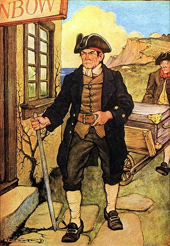 "Come in, Jim," said the captain. "You're a good boy in your line, Jim; but I don't think you and me'll go to sea again. You're too much of the born favorite for me. Is that you, John Silver? What brings you here, man?"