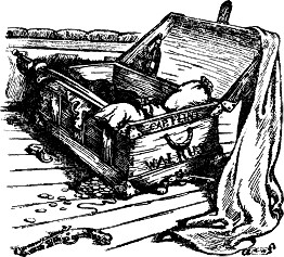 There was no time left for him to answer in. The buccaneers, with oaths and cries, began to leap, one after another, into the pit, and to dig with their fingers, throwing the boards aside as they did so. Morgan found a piece of gold. He held it up with a perfect spout of oaths. It was a two-guinea piece, and it went from hand to hand among them for a quarter of a minute.