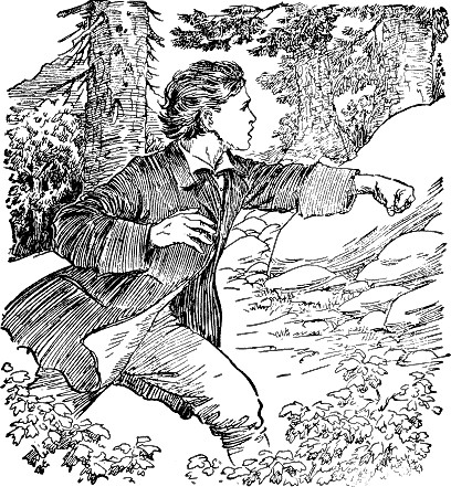 He was raising his arm and his voice, and plainly meant to lead a charge. But just then—crack! crack! crack!—three musket-shots flashed out of the thicket. Merry tumbled headforemost into the excavation; the man with the bandage spun round like a teetotum, and fell all his length upon his side, where he lay dead, but still twitching; and the other three turned and ran for it with all their might.