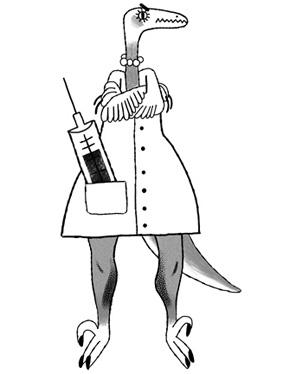 — Я торжественно обещаю не есть пациентов, — заявил юный дромеозавр. — Я же давал клятву Гиппократозавра. И я умею лазать по деревьям, видите когти? И немножко летаю… ну, перепархиваю. Я вам пригожусь.