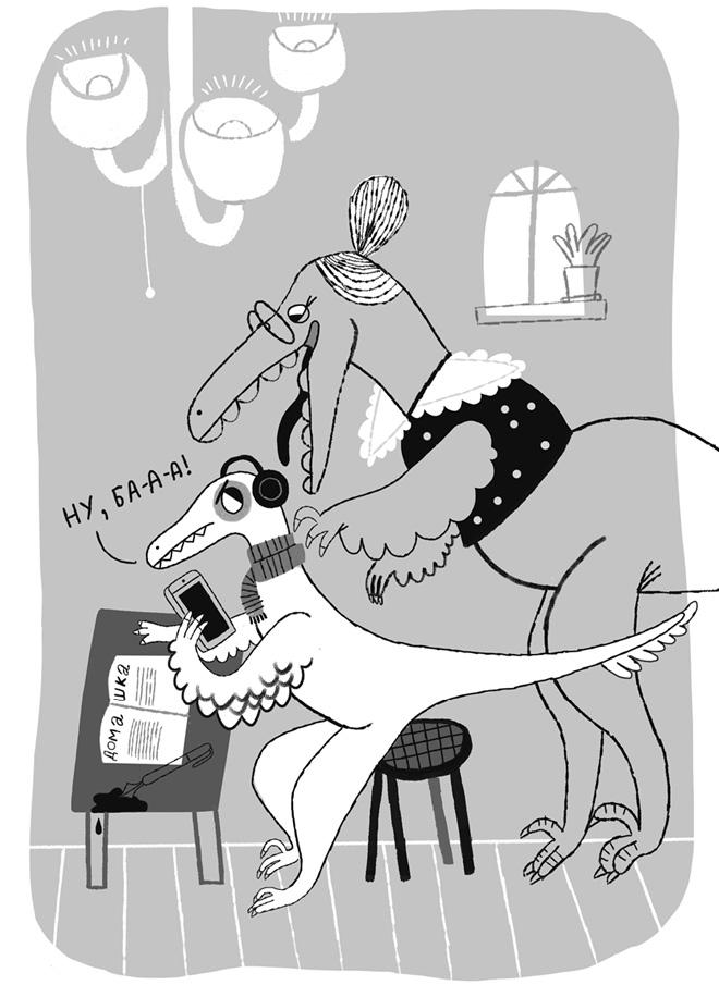 — Нет, моя семья порядочная и неядовитая, — сказал юный динозавр. — Только бабушка иногда кусалась, когда мы не хотели уроки делать. Но яд у неё был слабенький, от него кожа слегка чесалась.