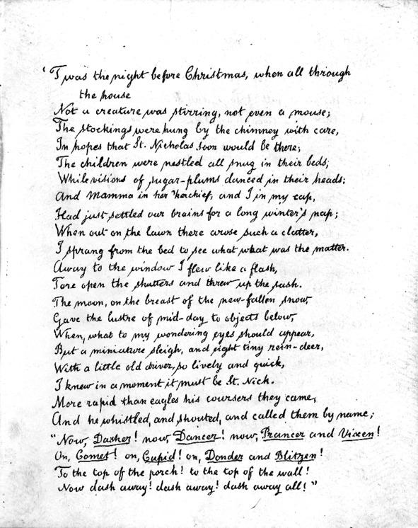 Сделав героем сказки святителя Николая в образе старичка Санта Клауса — более, как ему показалось, сказочного персонажа, вручающего детям подарки, он даже и не предполагал, что совершает некую революцию в традициях праздника. Ученые теперь говорят так, что существует всего четыре оригинала этого стихотворения, написанного рукой Мура, и каждый из них в наши дни — большая ценность.