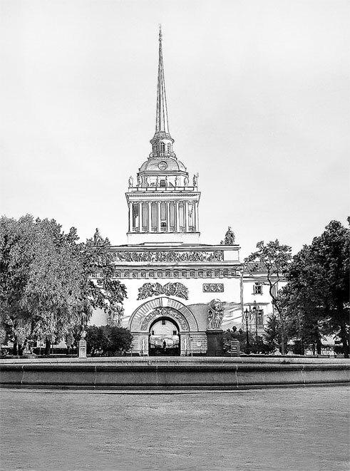 После Кроншлота Трезини откомандировали в сторону Нарвы, где Петр вел бои, и установил там деревянные триумфальные врата для русской армии. А уже осенью 1704 года главный архитектор строил Адмиралтейство. В этом месте кипело самое большое строительство, граница города в то время пролегала по речке Маленькой (Мойке), новорожденный город еще скромных размеров, но он рос, как сказочный богатырь, ни по дням, а по часам, обещая со временем стать чудом света.