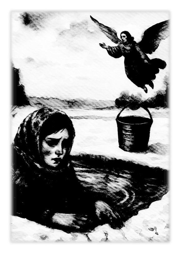 Но полное ведро оказалось непосильным для детских рук и в секунду утянуло её в прорубь. Сколько она барахталась, пытаясь удержаться за скользкие и мокрые края проруби, сказать сложно. Спасибо старой папиной фуфайке, которая надулась колом и не дала течению сразу затянуть девочку под лёд. Видимо, Господь дал Вере при рождении надёжного ангела-хранителя, который всегда был рядом с ней. И в этот момент, когда она поняла, что сил больше не осталось держаться, кто-то ухватил её за узел шали и сильным рывком вытащил на лёд. Это был шофер с проезжавшей по мосту машины, увидевший, как тонет девчонка. Сначала он заорал на неё и даже выругался матом, но потом ухватил за руку и потащил по тропинке к близкому дому. Увидев, что Вера схватилась за дужку второго ведра с водой, серьёзно посмотрел на девочку, взял ведро и донёс до крыльца их дома. Она не запомнила его лица, только долго помнила полинялую гимнастёрку да стёганку военного покроя, а ещё теплоту мужской крепкой руки, в которой отогрелась её ледяная и израненная об острые края проруби ладошка. Чтобы мама не догадалась, она сняла всю мокрую одежду и разложила на печке.