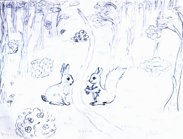 Зайцы дружны с белками и поэтому наш любопытный зайчишка спросил у белки, а что это за деревья такие в этом лесу?
