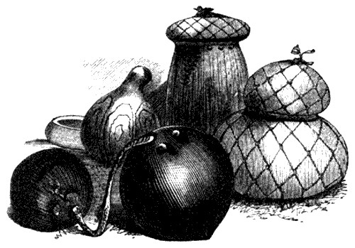 The woolly hides of the buffaloes supply the new-comer in the desert with the most splendid and comfortable beds. When laid over the roof they protect his unfinished house from rain and storm; he uses their leather for saddles, boot-soles, making ropes of all sorts, traces, &c.; its meat, one of the most luxurious sorts that nature offers man, seems to be given to the borderer as a compensation for the countless privations and thousand dangers to which he subjects himself. Buffalo's marrow is a great delicacy, and very strengthening. The fat can be used in many ways, and the horns converted into drinking cups, powder flasks, &c.; in a word, the whole of the buffalo is turned to account in the settler's housekeeping.