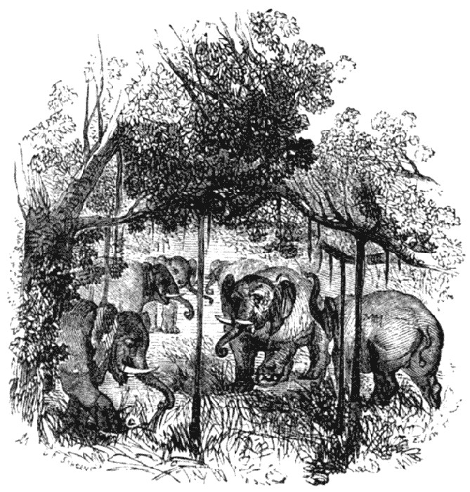 I rode first into the river, and Lizzy followed obediently after me, though it cost some persuasion to make my companion refrain from riding a few yards lower down in order to pluck some specimens of the beautiful aquatic plants growing on the surface, for he fancied it was no depth, while he and his Lizzy, heavily laden as they were, would have sunk, and never reached the bank again alive. I remember, while hunting, swimming on horseback through places where the current was extremely violent, and carried away my dog, which reached the bank eventually, bruised by the rocks and bleeding terribly. We reached the opposite side without any difficulty, and followed a deep-trodden buffalo path into the forest; which runs with a breadth of several miles along the river. After you have been riding ever so short a time in the sun, you feel the benefit of the gloomy and impenetrable shade of such a forest in an extraordinary degree; the air beneath the leafy aisles seems quite different; it is not only cool and refreshing, but appears to have been purified in its passage through the leaves, for these forests grow on elevated ground, where no swamps or standing waters poison the air with the exhalations of putrified vegetable matter, as is the case on the banks of the Mississippi and other eastern rivers of America. There is not a more majestic or imposing sight than such a forest; trees of the most gigantic size grow in the wildest confusion, strangest shapes, and most varied hues, so closely together that you cannot understand where all their roots find room. You see, perhaps, twenty varieties of the oak, among which the burrel oak is the handsomest and largest; it is eight feet in diameter, and its stem measures forty feet to the first branches, while its crown attains a height of one hundred and fifty to two hundred feet. On the river banks cypresses stand side by side for miles, so close together that there is hardly room for a man to pass between them. The black walnut, the tulip tree, the peca-nut, several sorts of elms, the mulberry, maples, ashes, planes, poplars, &c., press against each other, and wherever death makes a gap and restores one of these giant trees to the earth, young shoots start up from its dust in the opening through which the blue sky is visible, and soon fill up the room. Countless varieties of smaller trees flourish in this gloom, and force their way between the colossi of vegetation, for instance, the wild cherry, wild plum, a small chestnut, and several species of nut trees; beneath these the bushes and cactuses spread with an incredible variety, and relieve the gloom with their magnificently coloured perfumed flowers, which seem to maintain an eternal rivalry with the blossoms of the llianas swinging from tree to tree in the airy height. Finally, the earth itself, beneath the darkest bushes, is covered with a dense carpet of delicate plants, which, although hidden from every sunbeam, are not the less worthy of being sought by the fervent admirer of the masterpieces of nature; they gleam like subterranean fires in the shade, and diffuse their perfume far around in this palace of foliage.