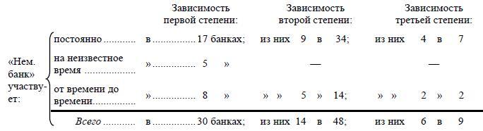 [*] Jeidels. «Das Verhältnis der deutschen Großbanken zur Industrie mit besonderer Berücksichtigung der Eisenindustrie». Lpz., 1905, стр. 271.
