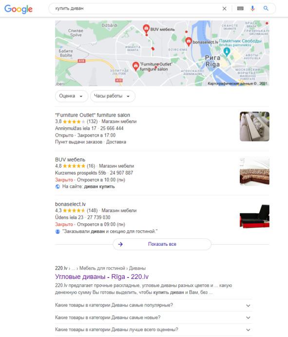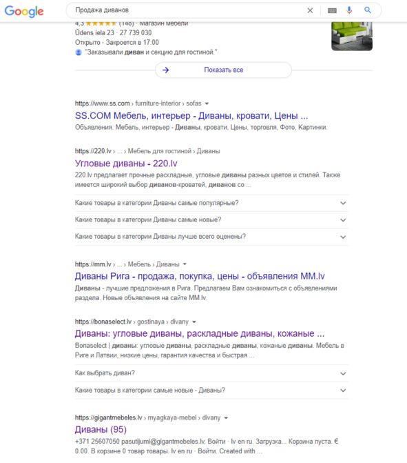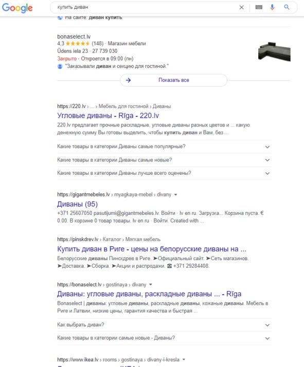 Если Google не смогла точно определить, что ищет пользователь, то в соответствии с предыдущим опытом первым ставится наиболее вероятный результат, а далее другие варианты. Например, на запрос пользователя «кухня», человек может искать: