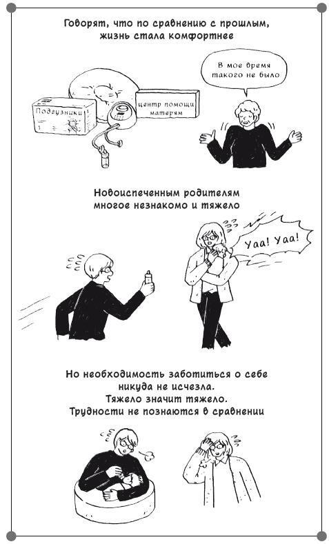 Ли Сона: Так и есть. И все же, спрашивая себя, почему сейчас такие трудные времена, вы, вероятно, пытаетесь убедить себя, что все не так уж плохо? Я тоже так делала. После рождения ребенка я часто слышала, например, «Жить стало легче», «Чего вечно ноешь». Обидно, конечно, но и поспорить нельзя. Сейчас мы растим детей в намного более комфортных условиях, чем раньше. Но нынешнему поколению родителей тоже может быть тяжело. И это абсолютная правда. В свое время я этого не понимала.