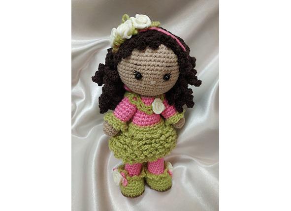 Размер куколки напрямую зависит от толщины выбранных нитей и толщины крючка. На моих материалах куколка получилась ростом 21 см.