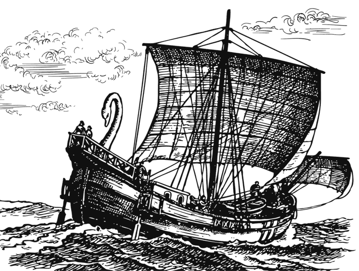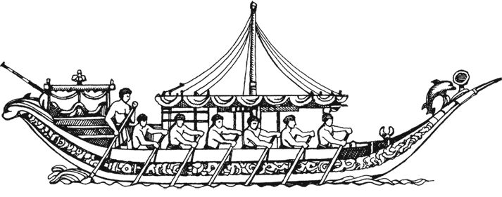 Путь окончен, корабль пристает к берегу. Молчаливые рабы оставляют весла и, понукаемые надсмотрщиками, начинают таскать из трюма на берег остроконечные глиняные кувшины с маслом и соленой рыбой. Скоро начнется торг. Местные жители принесут шкуры зверей и тяжелые тусклые слитки олова.