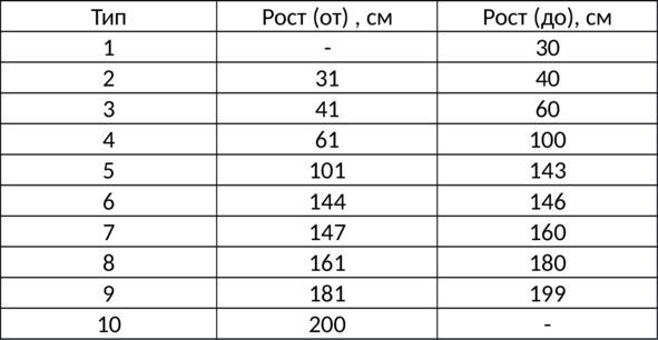 Диапазоны типологии могут быть заданы на основе таксономического анализа, выявляя наиболее вероятные места кучкования параметров заданного признака.