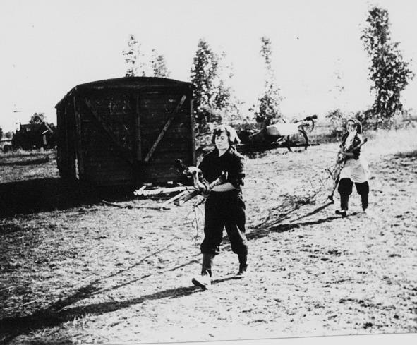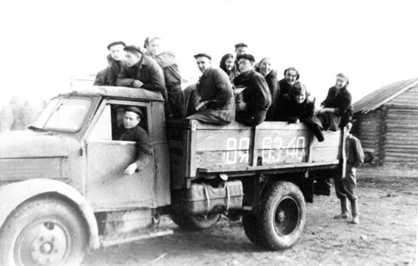 В Шегарке нас погрузили на грузовые машины без сидений и увезли в с. Десятово. Привезли к деревянной церкви, где, очевидно, у них был в это время клуб. Здесь в зале были с двух сторон сооружены настилы с сеном, и между ними длинный стол и скамьи. С одной стороны настил для юношей, а с другой — для барышень.