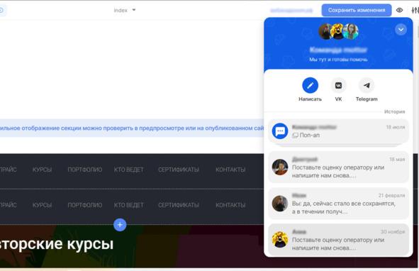 — добавление виджетов и чатов, ссылок на соцсети, и многого другого, исходя из задач и целей сайта.