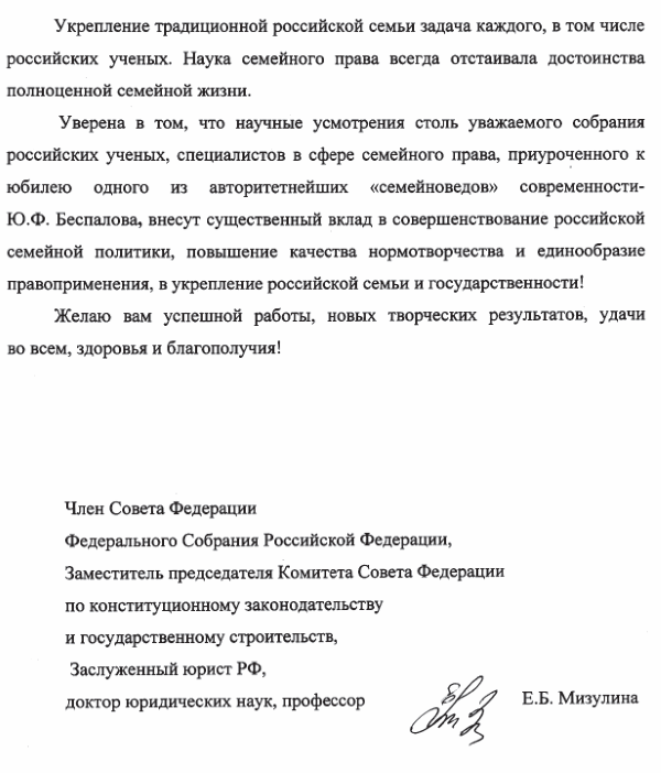 Укрепление российской семьи требует последовательной государственной семейной политики, совершенствования семейного законодательства, правоприменения и новых подходов российской науки к обоснованию основ российской семьи.