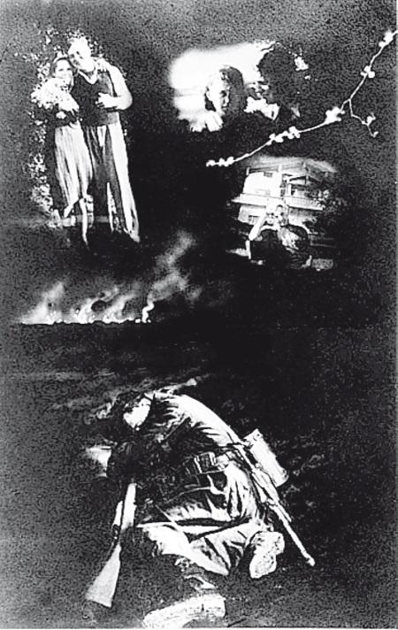 «Стоял июль сорок первого. Мы подошли к Новинскому бульвару. Белые колонны рухнули на асфальт. Вырвалось пламя, огонь продолжал бушевать. На фронтоне, на желтом фоне летели два ангела. Они трубили, словно хотели рассказать всему миру: гибнут книги! Горел самый красивый дом Москвы – Книжная палата… Уже месяц на нашей земле свирепствовала война. Мою жену Эрику с шестимесячным сыном отправил в Тбилиси к ее родителям. Мы, сотрудники еженедельника «Иллюстрированная газета», приложения к «Правде», жили в редакции, спали на холодных клеенчатых диванах и делали никому не нужный журнал. Однажды в свободный вечер решил проверить, цел ли мой дом. С приятелем, ретушером Сашей Комаровым, пришли на Трубниковский переулок. Дом был цел. Выпили бутылку вина, погрустили: журнал наш – дохлое дело, мы в стороне от схватки. На душе было скверно. С горьким чувством легли спать.