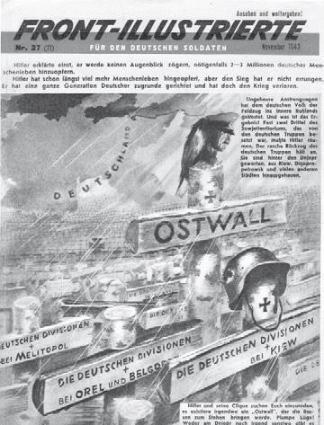 Продолжая делать журнал «Фронтовая иллюстрация» для нашей армии, маленький коллектив теперь готовил и издания для немецких солдат – помимо Front-Illustrierte еще и Freies Deutschland in Bild. Отдельные номера Front-Illustrierte выходили на итальянском, финском, венгерском. А еще делали фотогазету и листовки о героях войны на русском языке для наших и – важнейшая вещь! – контрпропагандистские листовки на немецком с фотомонтажами А. Житомирского.