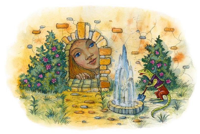 Вспомнив про чудесный сад, она схватила золотой ключик и бросилась к дверце.