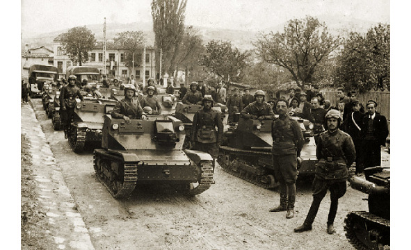 T-26. Foto Dubna-Lutsk-Brody hilja tanki lahingu tagajärgede kohta. Esimene seerianumber klassikaline Nõukogude tank, on osalenud paljudes lahingutes, võeti kasutusele pärast palju probleeme katki mootorid ja koost hoonete (sh pehme seinaga). Raskused kõrvaldati pärast seda, kui tootjatel lubati muuta muutusi kodumaise tehnoloogia eripäraga seotud esialgses kavas. Armastus: esimene seeria — 37-mm püstol, 7, 62 mm. kahe püstoliga kuulipilduja, siis ühe torni versioon 45 mm. relv, kaks 7, 62 kuulipildu. Broneerimine kuulikindel otsaesine, külje kere 15 mm, laup, küljel torni 15 mm.. Meeskonnal on kolm inimest. Kaal 8 tonni. Kiirtee mööda maanteed on 30 km. h, jõuallikas on 120 km. Väljateenitud tunnustust veteranid Suure Isamaasõja — «ajaks hea tank, ilma et pidime olema väga raske.» Prototüüp — inglise keel (kaks torni) kuus tonni «Vickers». Hoolimata mõne erinevuse reservatsioonist, võis ta oma vastast tabada, on Saksa T-3 peaaegu kindel, nagu ta on. Aga töötoad Nõukogude tanker tank vahemikud — 6,5 tundi (mõnikord 300 meetri sirgjooneliselt ja tagasi angaari), saksa — 50—120 tundi (peaaegu põles ressurss soomukid). Ajavahemikul 1931—1941 oli 11218 T-26 (pool nõukogude tanklast sõja alguses)