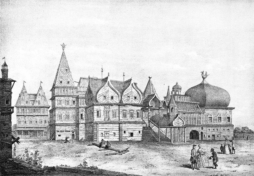 Деревянный дворец в Коломенском. Гравюра Фридриха Гильфердинга. 1780 год
